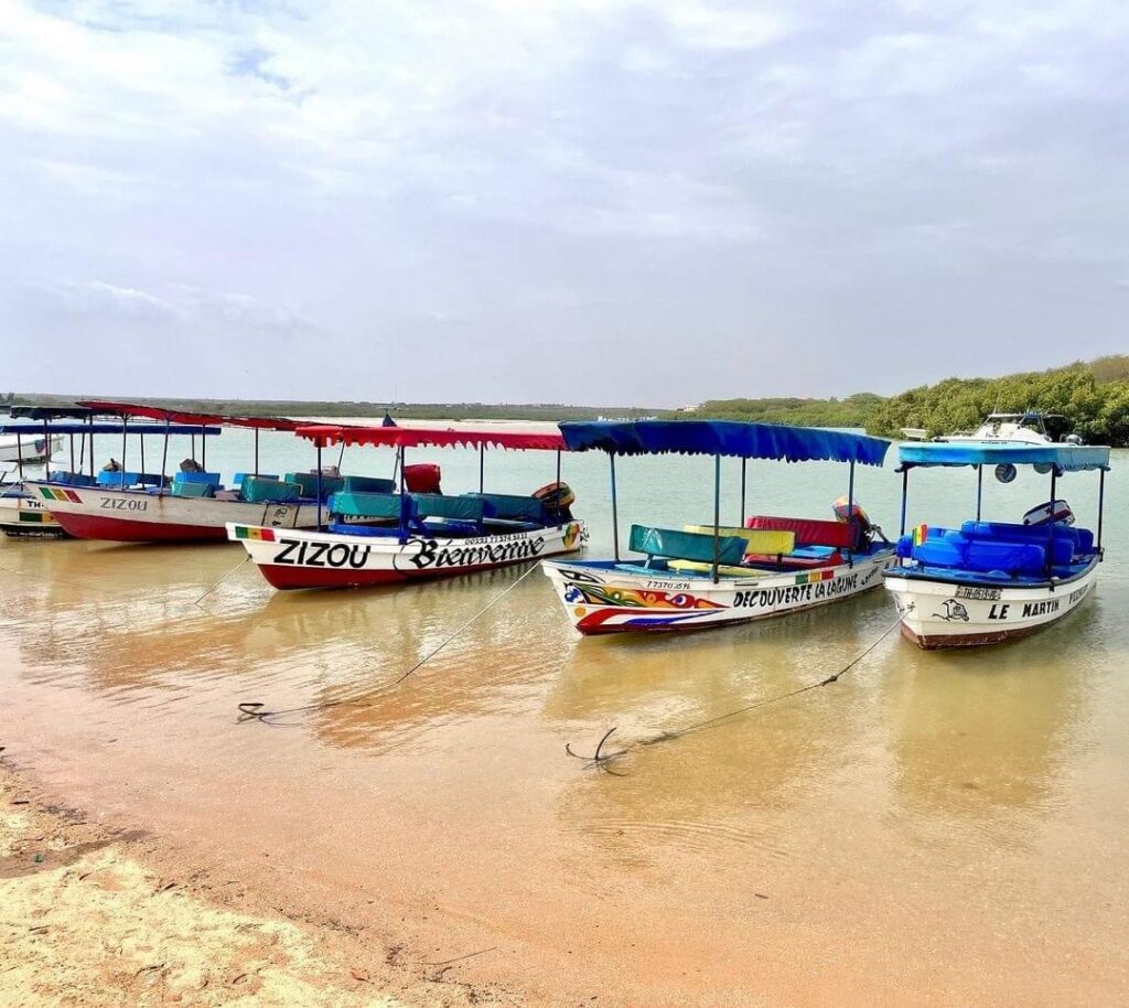 Après cette matinée sportive, direction Somone, un petit paradis préservé au cœur de la mangrove. Ici, le rythme ralentit et le décor change : lagune turquoise, pirogues colorées et oiseaux majestueux.