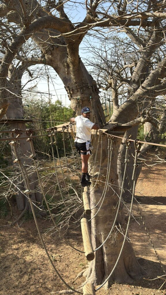La journée commence à l’incontournable Accro Baobab Park, un parc unique en Afrique de l’Ouest, entièrement installé au milieu d’une majestueuse forêt de baobabs.